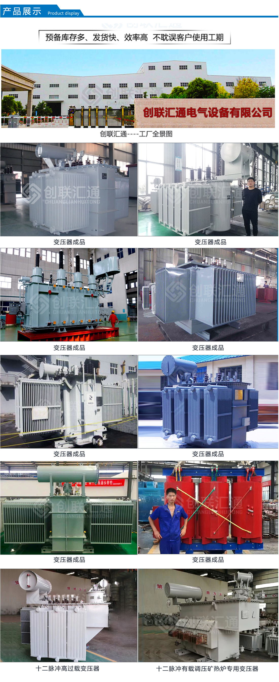 創聯匯通主營產品有:S11(13)、S20(22)新能效及SH15系列10KV級~110KV級油浸式電力變